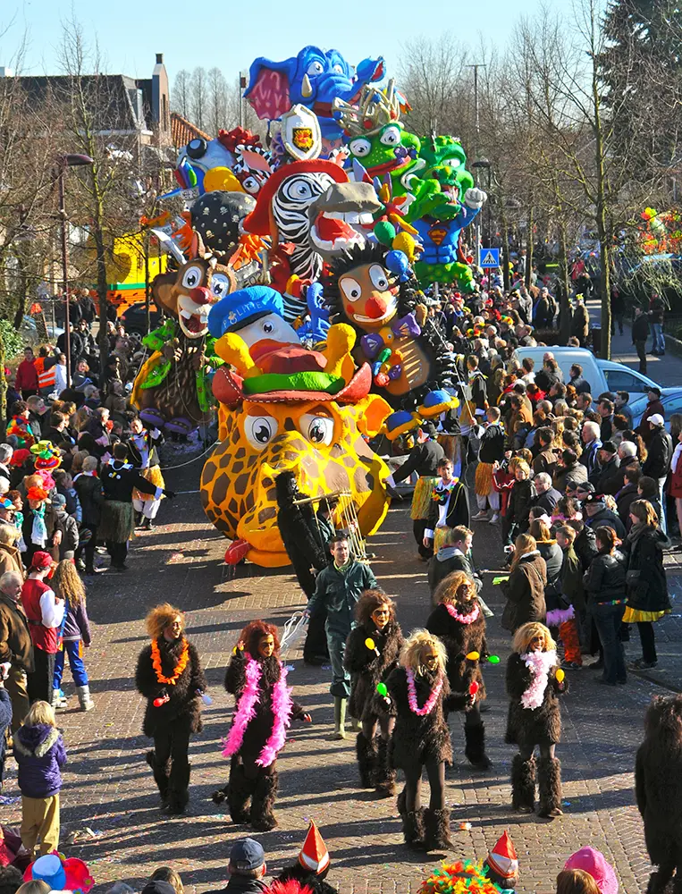 Optocht Schaijk, het meest spectaculaire moment van de carnaval is de optocht. Verenigingen en vriendenclubs trekken door de straten om te laten zien wie ze zijn.