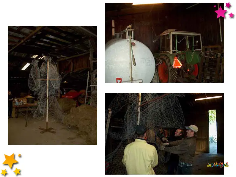 De grote schuur, die bouwklaar gemaakt wordt, bij Harrie Jans. Daar komt het onderstel met de grotere poppen.