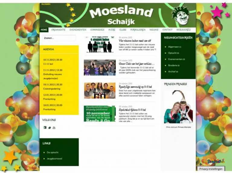 De website van Stichting carnaval de Moeslanden, www.moesland.nl, is vernieuwd. De site was een hele tijd niet bereikbaar, maar daar is nu verandering in gekomen. De site heeft een fris nieuw uiterlijk gekregen en is duidelijk opgezet. De stichting kan hier trots op zijn en kan weer jaren vooruit met deze nieuwe site.