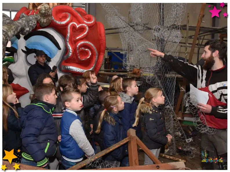 Nadat begin deze maand al 100 Zeelandse kinderen een kijkje namen op de bouwplaats van CV Goei Geknoei, kreeg maandagmiddag ook carnavalsvereniging De Wulpse Hertjes bezoek van schooljeugd van buiten Schaijk. Zo’n twintig leerlingen van groep 4/5 van basisschool De Sprankel uit Grave werden door Djarek van den Hoogen en Teun van der Zanden van De Wulpse Hertjes en Wouter Spijkers van Stichting Carnaval de Moeslanden wegwijs gemaakt in de wondere wereld van het wagenbouwen.