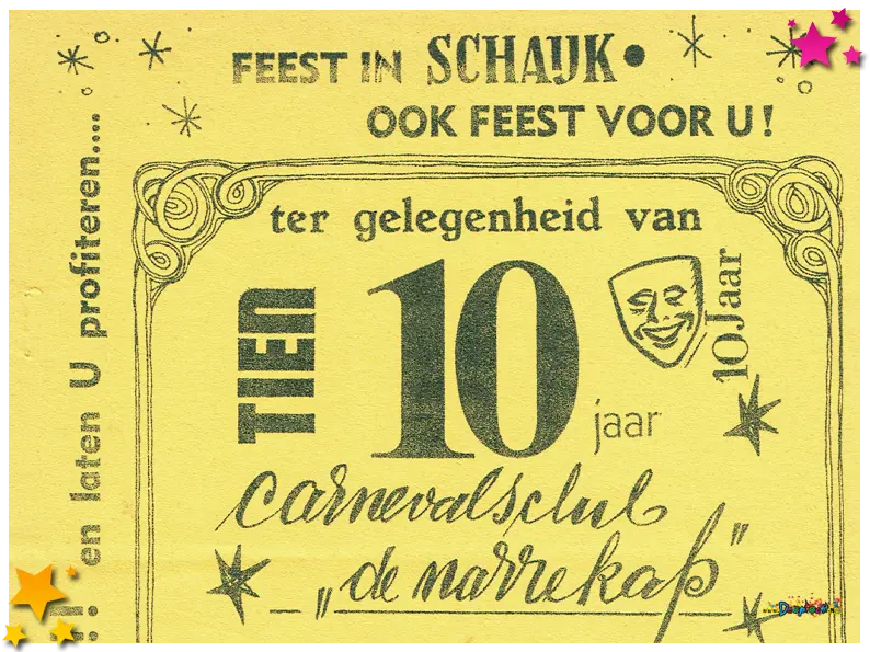 In 1968 bestond carnavalsvereniging De Narrekap 10 jaar. En zoals het een echte carnavalsclub betaamt, werd dit natuurlijk gevierd. Dit is op zich natuurlijk niets bijzonders. Wat wel bijzonder is, is dat er een heus jubileumboekje werd gemaakt wat tevens diende als uitnodiging.