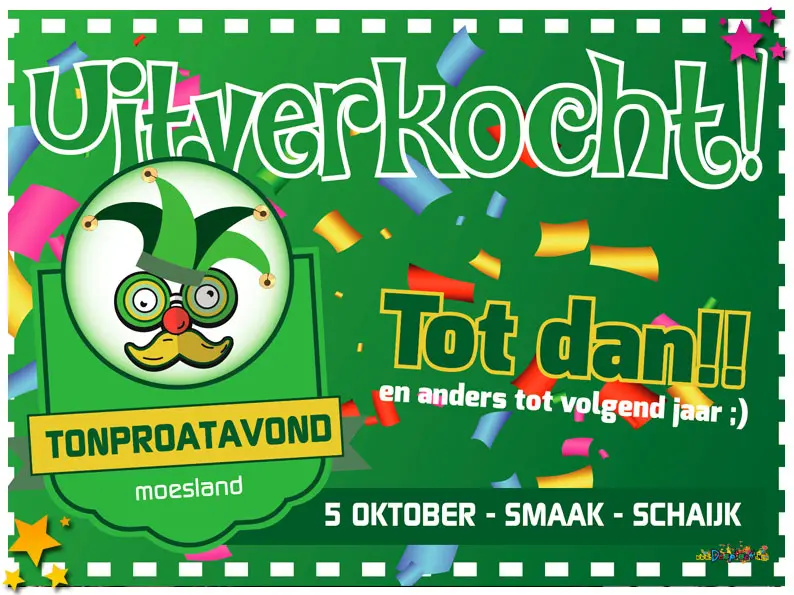 De organisatie heeft al laten weten dat er volgend jaar, in 2020, wederom een tonproatavond zal komen. En dat is goed nieuws, zeker voor degene die nu geen kaartje hebben weten te bemachtigen.