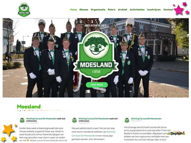 De officiële website van Stichting Carnaval de Moeslanden, moesland.nl, is sinds vandaag geheel vernieuwd. Dat mocht ook wel, want de vorige site was al heel wat jaartjes in de lucht en toe aan vernieuwing.