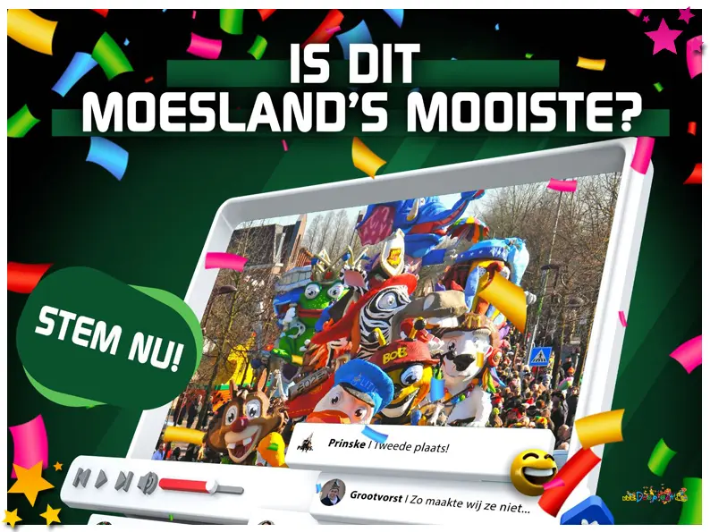 Dit jaar gaat Stichting Carnaval de Moeslanden in de aanloop naar carnaval 2021, online Moesland’s Mooiste organiseren. Met uiteindelijk de uitreiking van: Moesland’s Mooiste.