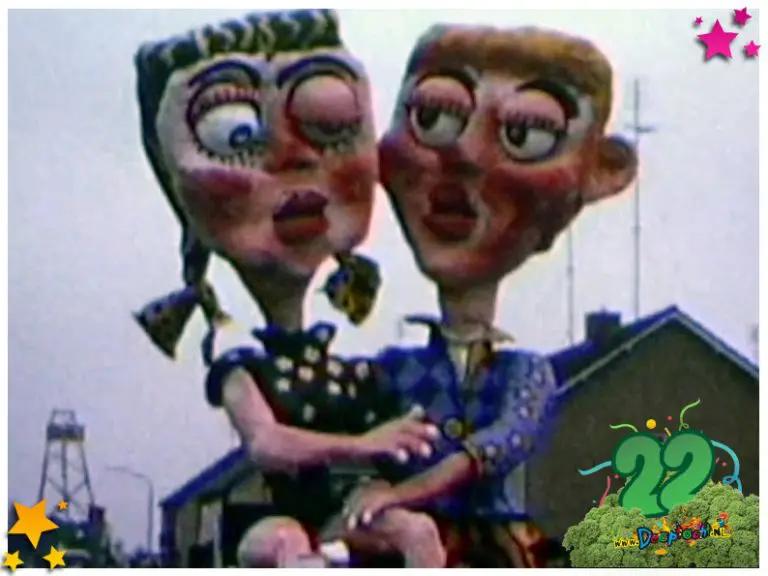 Maar liefst negen keer werden ze eerste in de Moeslandse Optocht met hun prachtige wagens. De Oelewappers. Als jong manneke mocht ik meelopen: ‘Moesmaandag, een groot circus’ was de laatste: ik was 11 en herinner me het nog goed. Ons pap was Prins en zijn clubke de Oelewappers pakte nog een keer goed uit. Maar ook in al die jaren ervoor bouwden ze prachtige wagens, met sprekende koppen vol prachtige bewegende mimiek. Kijk goed naar het filmpje en ontdek bewegende pupillen, ogen, wimpers/oogleden, onderkaak, mond/kin en zelfs lippen van de kusmondjes.