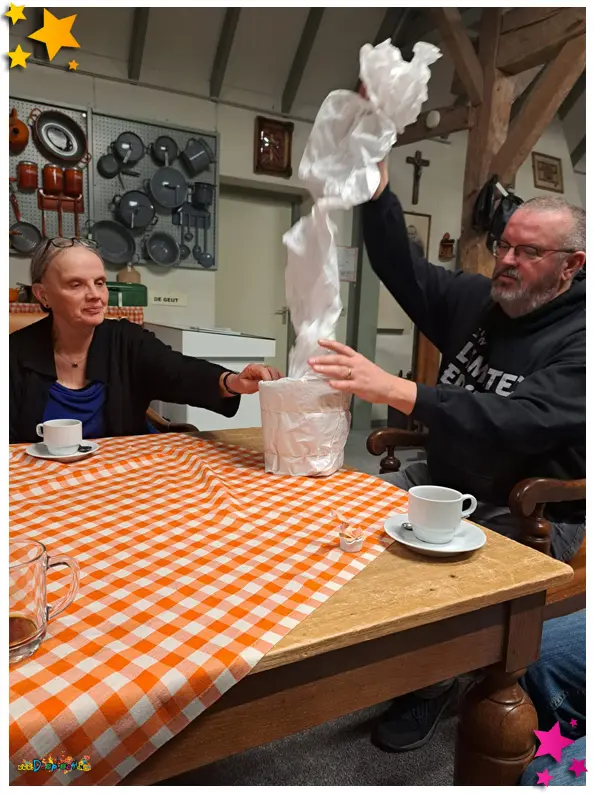 Goed ingepakt en met een prop papier gevuld om de vorm te behouden mocht ik het uitpakken. Dat is toch wel een dingetje, een steek uit 1961, gedragen door Prins Jan I dat is echte Moeslandse carnavalshistorie. Liesbeth vertelde me dat de steek is gemaakt door haar moeder en dat de originele veer er nog op zit. Prachtig om te zien en ik beloof dat dit met het 66-jarig jubileum voor iedereen zichtbaar zal zijn.