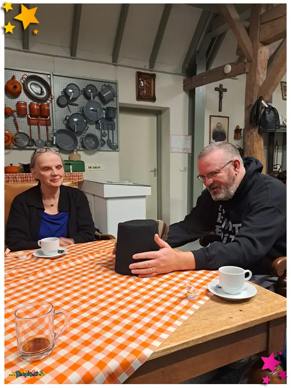 Er werd afgesproken dat het object aswoensdag om 10.30 uur officieel te overhandigen. Het werd uiteindelijk 11.11 uur (da’s ook veul carnavelesker). Het object, want ik weet niet of het een steek, pet of ander soort hoofddeksel is, werd mij de eer gegeund om het in ontvangst te mogen nemen voor het Moeslands archief.