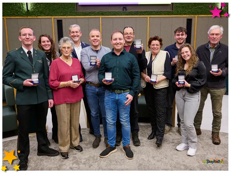 Met een klein feestje in een afgeladen vol gemeentehuis werden woensdag tien bijzondere vrijwilligers geëerd. Zij kregen de vrijwilligerspenning 2024 plus een cheque van 500 euro voor hun club of organisatie. Een onafhankelijke commissie selecteerde de kandidaten. Sommigen waren op de hoogte, anderen waren met een smoesje naar het gemeentehuis gelukt en totaal verrast.