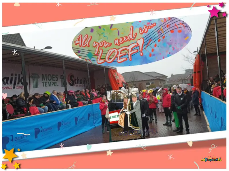 De optocht start om 13.30 uur en u bent van harte welkom op de tribune vanaf 12.30 uur. Dit jaar staat de Moestempel weer op een locatie in de Schutsboomstraat.