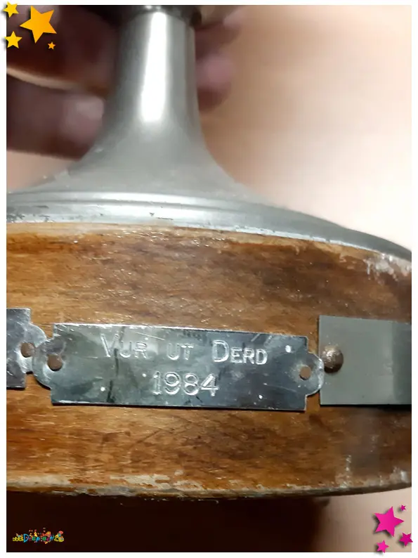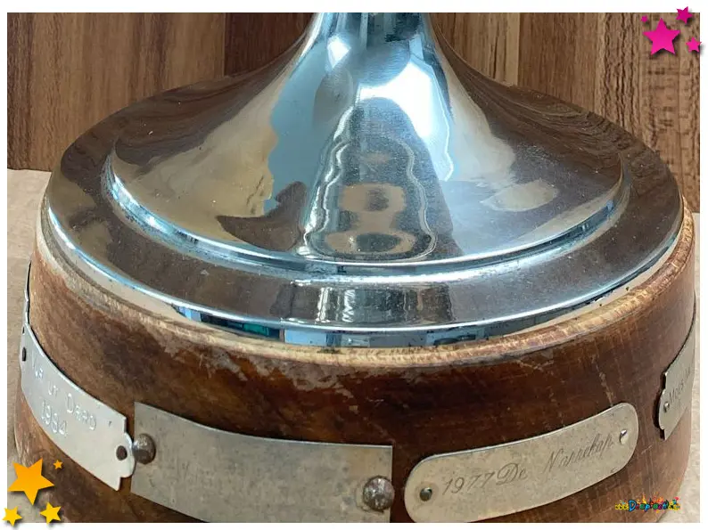 De beker had in al die jaren (48 jaar) de tand des tijds redelijk doorstaan, maar er mocht wel aan gebeuren. Zo zaten de naamplaatjes los en was hij nogal dof geworden.