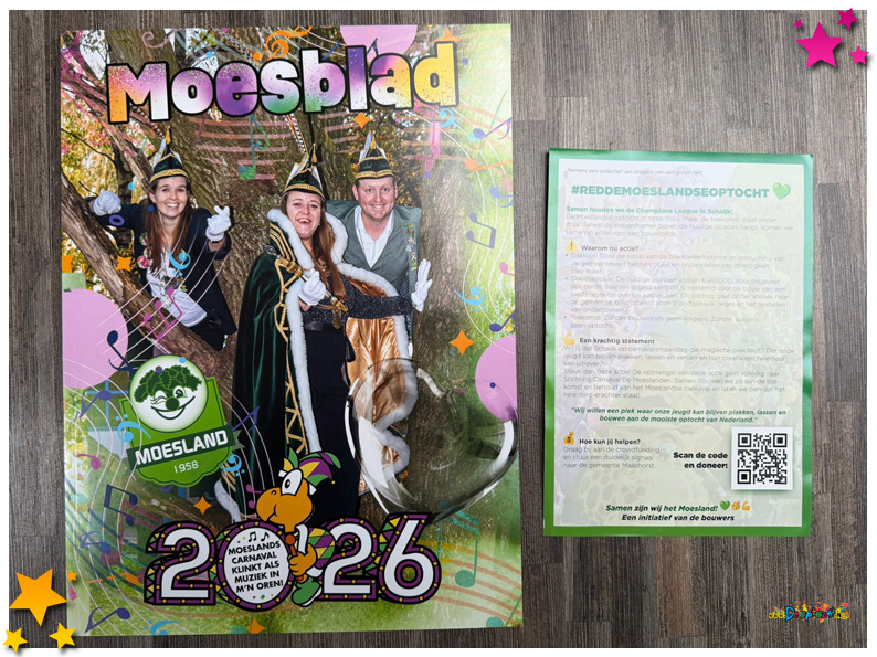 Moesblad 2026 werd dit weekend huis-aan-huis rondgebracht door Prinses Nicole I, de Raad van 11, de Hofkapel, Jeugdprins Olivier I, Jeugdprinses Babet I en de huppelpupkes. Niet alleen leden van de stichting hielpen mee; ook veel vrijwilligers van carnavalsverenigingen droegen hun steentje bij. Dat maakt het verspreiden van de carnavalskrant een mooi gezamenlijk moment voor heel Schaijk.