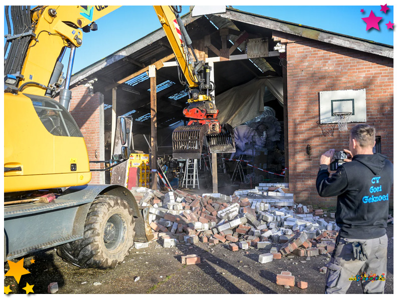 Met carnaval is niets te gek. Zelfs het slopen van een stukje schuur niet, als blijkt dat de carnavalswagen erin iets groter is uitgevallen dan gepland. Zo doen ze dat gewoon in het Schaijkse Moesland.