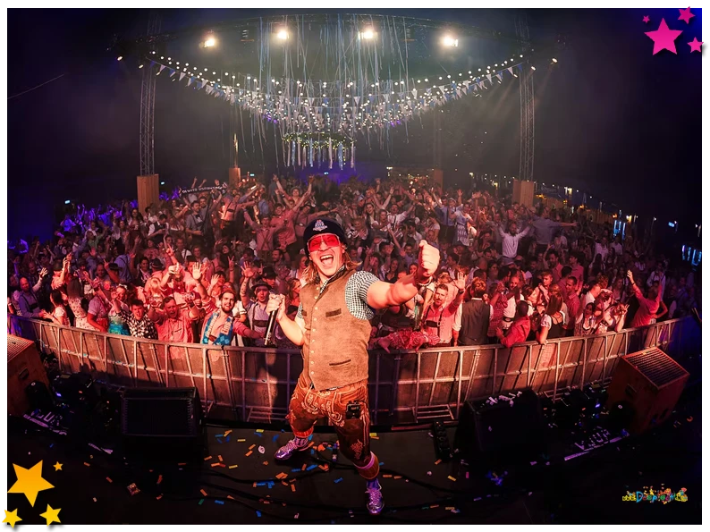 Verwacht een Liveshow vol energie, DJ skills, humor, eigen hitjes, verrassende edits, de allerbeste partyknallers aus der Heimat en van ver daar buiten.