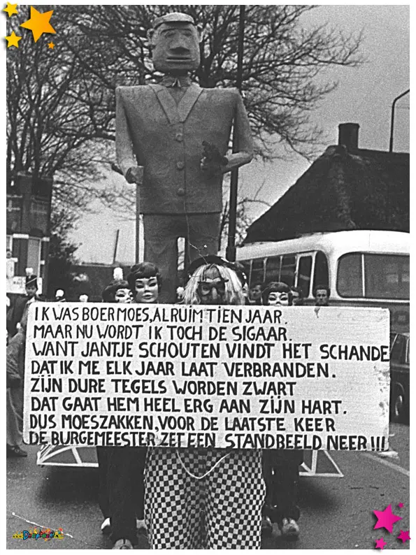 Toch bleef het ultieme symbool van het carnaval in Moesland niet de prins, maar Boerke Moes. Jaarlijks werd hij op het bordes van het gemeentehuis, het huidige Raadhuis, onthuld. Vaak werd hij daarna ontvoerd en pas na betaling van een stevig losgeld weer teruggebracht. Maar zijn lot lag altijd vast: op dinsdagavond om klokslag middernacht werd Boerke Moes verbrand, waarmee carnaval officieel eindigde.