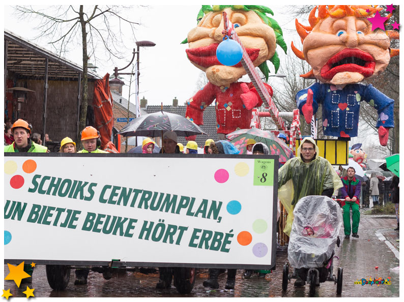 Carnavalsoptocht Schaijk 2016 – Regen, storm en winst voor De Wulpse Hertjes