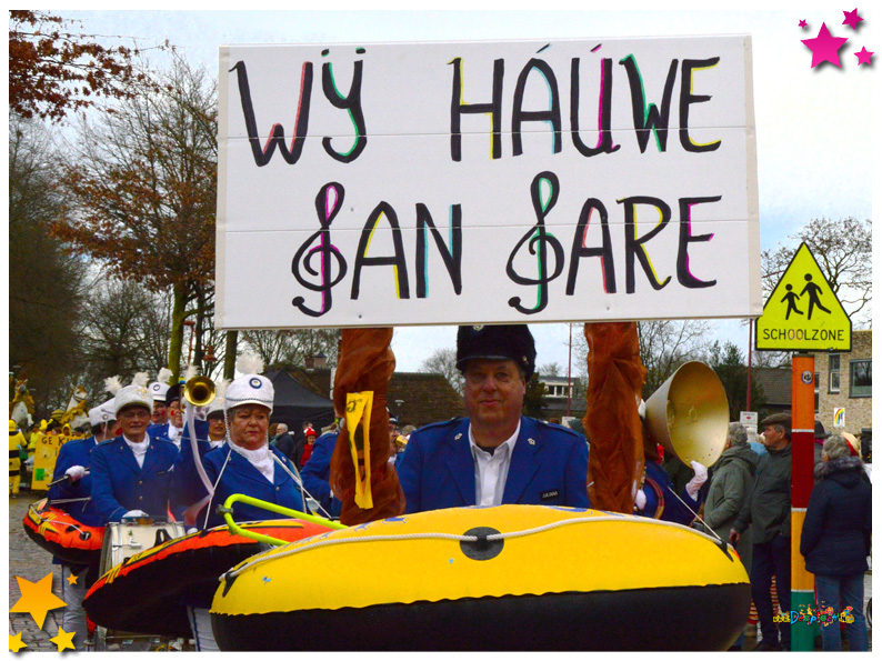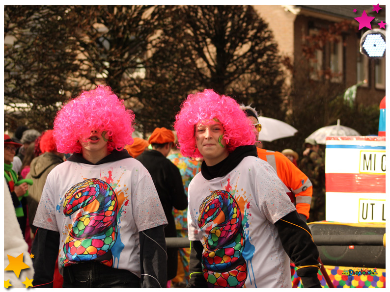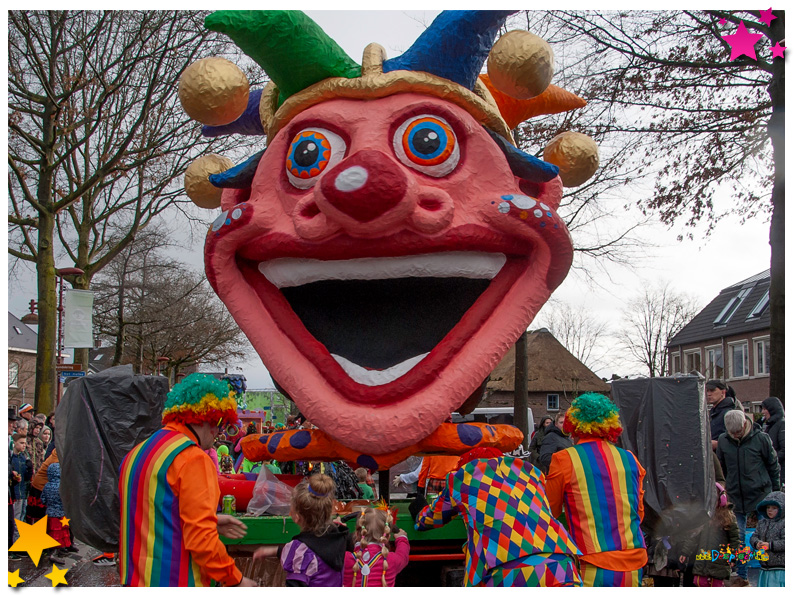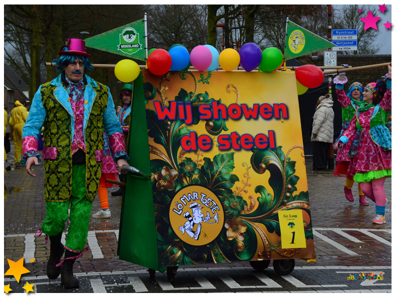 Het was niet zo’n best weer met regenbuien en zelfs af en toe hagel was het een natte editie. Met maar liefst 17 wagens, 9 grote loopgroepen, 19 kleine loopgroepen en 11 individuelen was het een lange en indrukwekkende stoet. De zevenenzestigste carnavalsoptocht van Schaijk trok, ondanks het weer, veel bezoekers naar het Moesland.