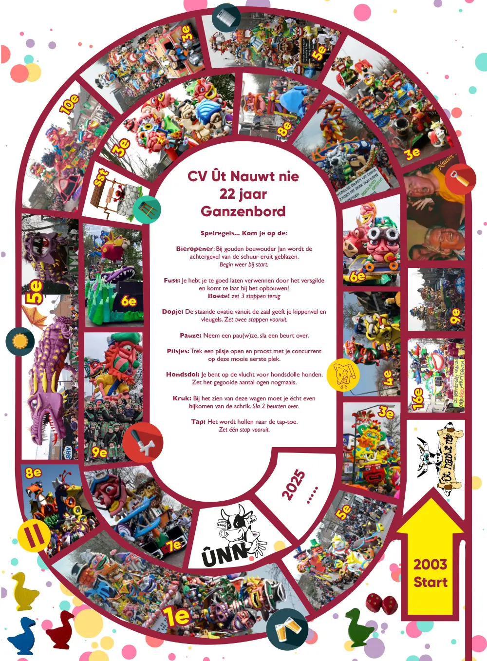 In het jubileumjaar van de Stichting (2103) werd Ut Nauwt Nie vijfde met het idee “55 Jaar carnavallen kunnen we als de beste, maar politiek gezien lijkt het net het wilde westen”.