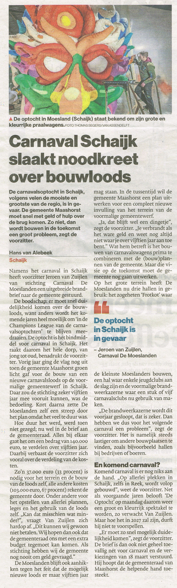 Idee: Carnaval stroomde vroeger uit elke porie, nu hebben we Braveheart nodig voor het herstellen van Moeslands glorie
