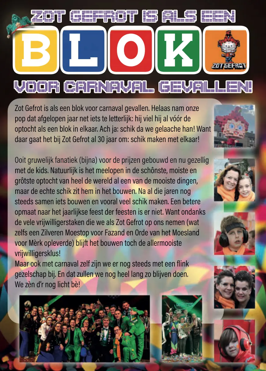 Idee: Zot Gefrot is als een blok voor carnaval gevallen
