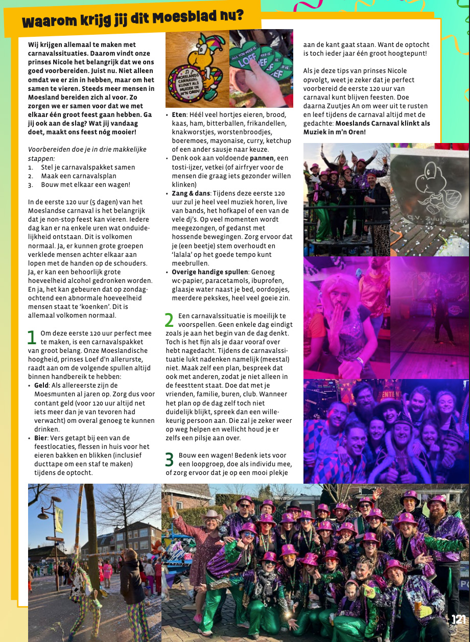 In 2026 doen ze samen met Schôn Gekwakt mee als B.F.C. Zuutjes Gekwakt en worden dan negende bij de wagens met ‘De Moeslandse Muziekcarrousel – Dè klinkt ès mûziek in mun oêre’.