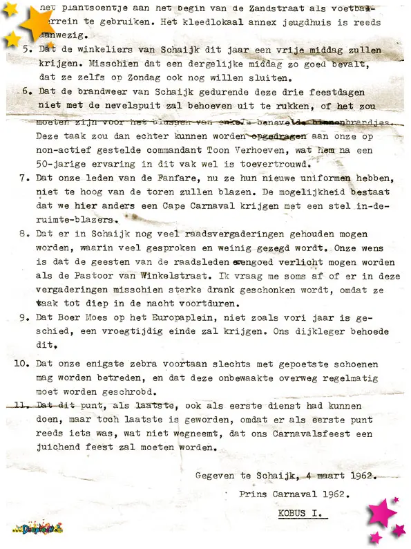 In 1962 is er ook een folder/boekje uitgegeven waar het carnavalsprogramma van 1962 in stond. Deze kun je hieronder lezen.