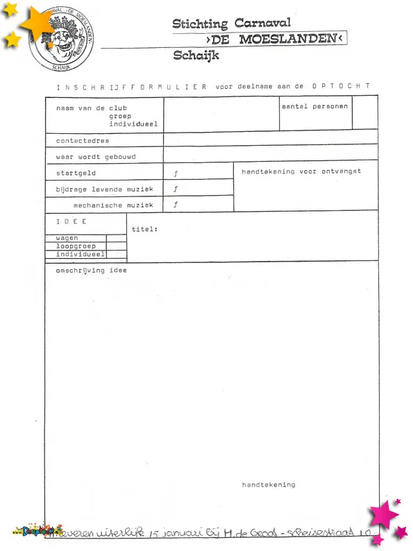 Inschrijfformulier optocht 1978