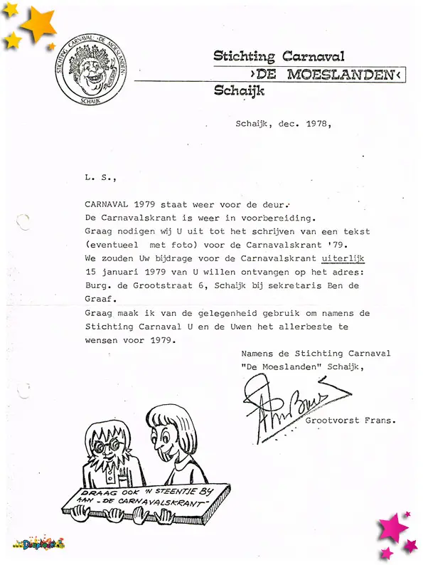 Oproep voor carnavalskrant 1978