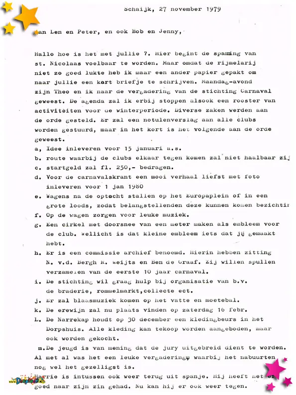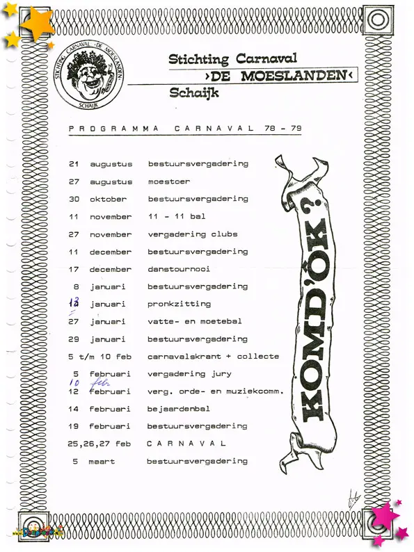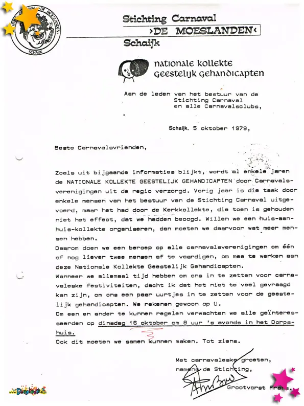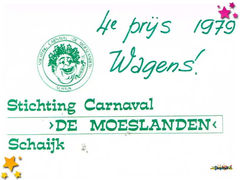 In 1979 is duidelijk te zien hoe sterk het Moeslandse carnaval inmiddels verankerd was in het dorp. Uit dit jaar zijn meerdere documenten bewaard gebleven die laten zien hoe professioneel én enthousiast het feest werd voorbereid en beleefd.