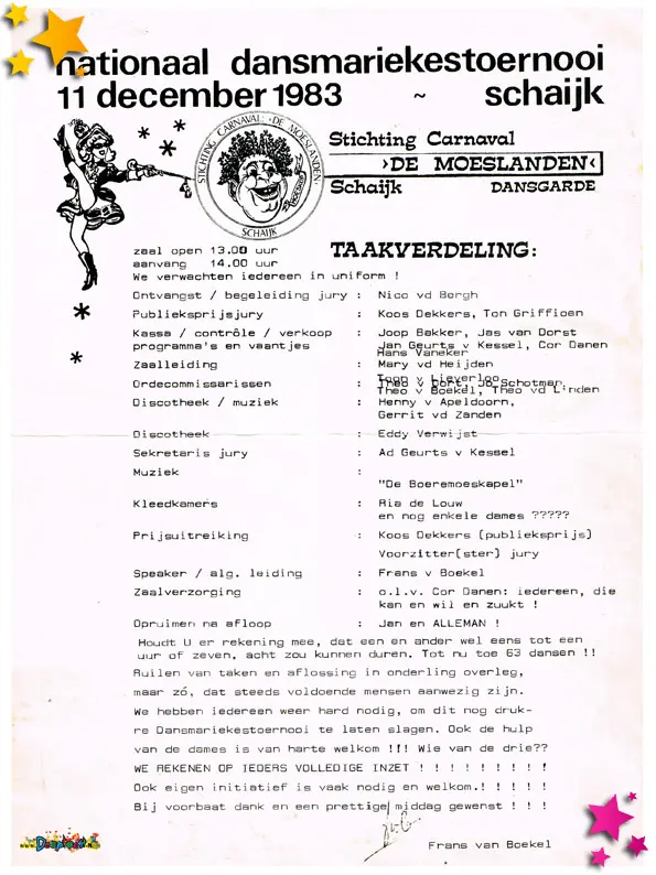 Taakverdeling Dansmariektoernooi 1983