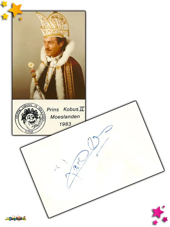 Opvallend is ook het stijlvolle visitekaartje van Prins Kobus II (Koos Dekkers).
