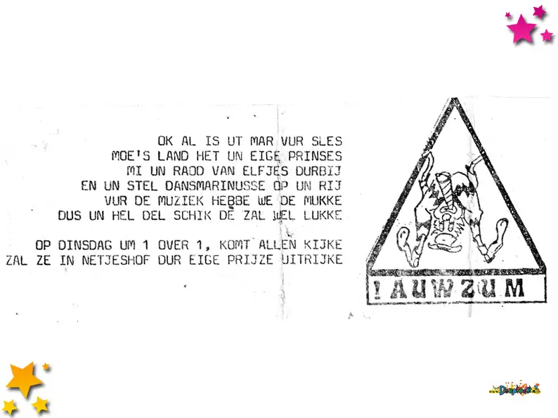 In 1986 deed Auwzum mee met een eigen prinsenwagen en met een heuse Prinses. Auwzum was haar tijd ver vooruit zo blijkt.