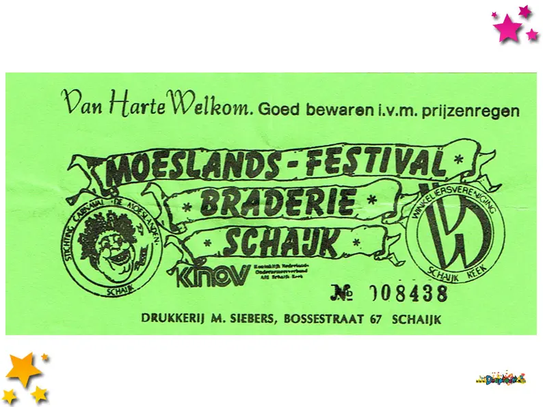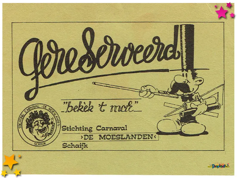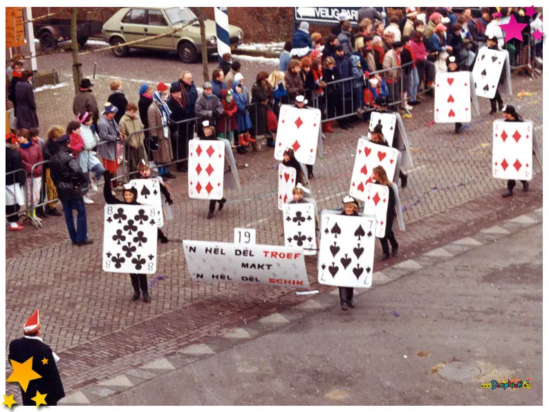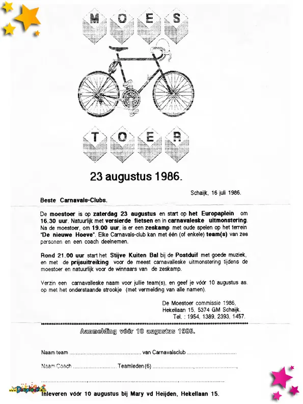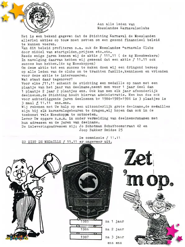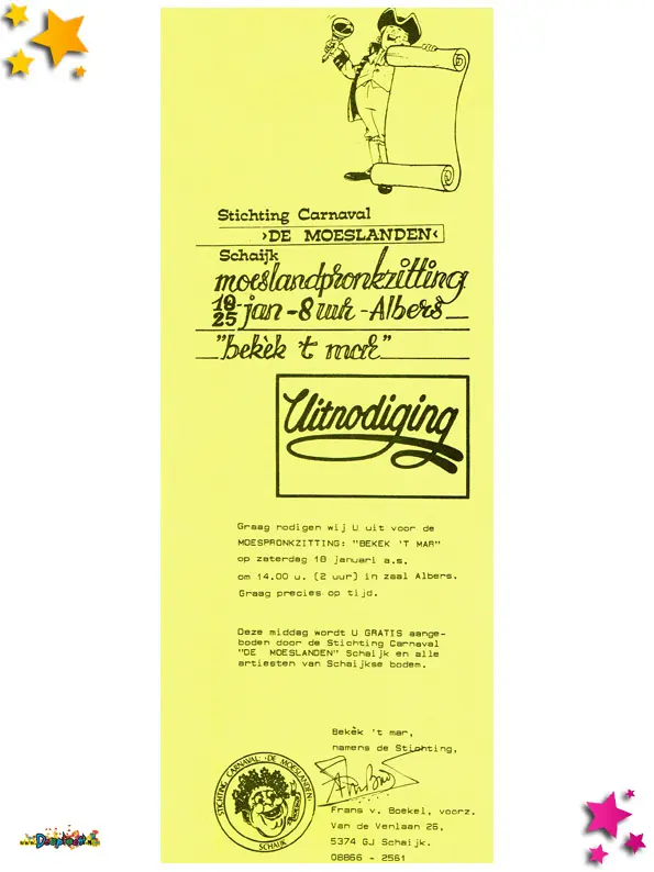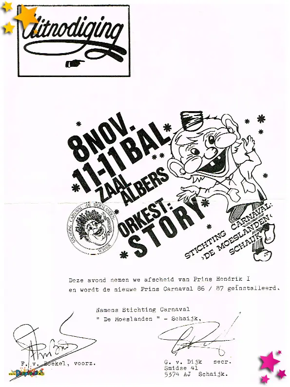 De uitnodigingen werden uitgedeeld tijdens de optocht van 1986.