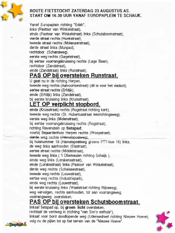 Ook in 1986 werd de Moestoer gefietst. Hieronder de uitnodiging en de route.