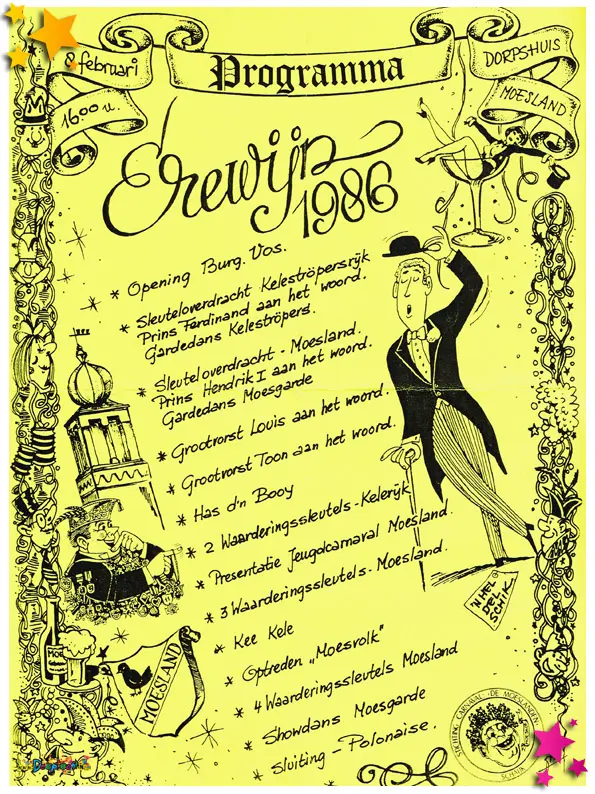 Het programma voor de Erewijn, oftewel de sleuteloverdracht, die in 1986 werd gehouden in Schaijk.