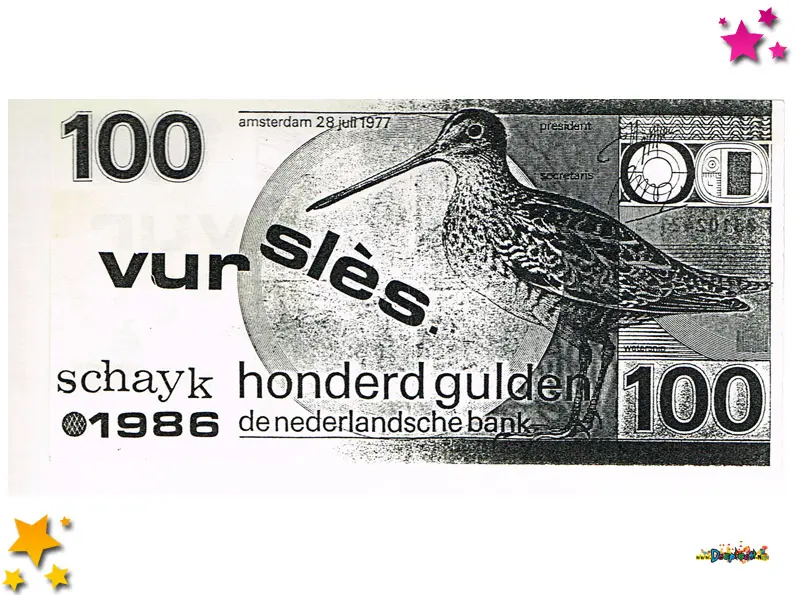 In 1986 deed Vur Sles mee aan de optocht bij de grote loopgroepen. Met “De Stroat hi ut!” werden ze eerste. Tijdens de optocht werden deze briefjes van 100 gulden uitgedeeld.
