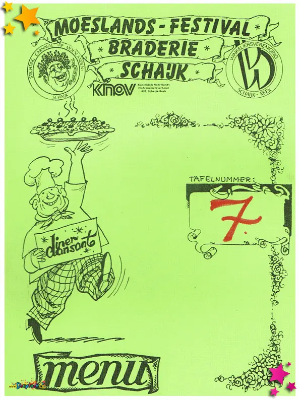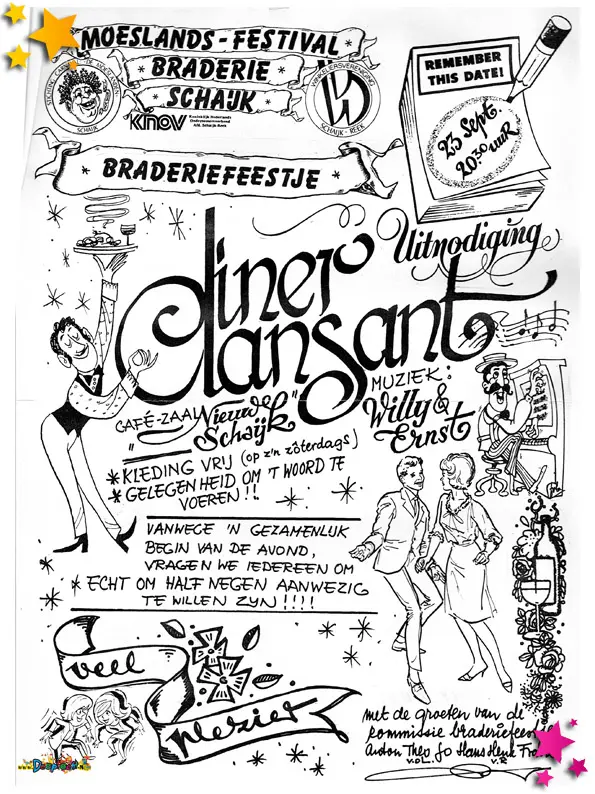 Tot slot was er een feestelijk diner dansant voor de vrijwilligers van de braderie. In plaats van een simpele bedankbrief of borrel werd er een chique avond georganiseerd waarin vrijwilligers konden genieten van lekker eten, muziek en dans. De uitnodiging en het programma van deze avond tonen opnieuw hoe belangrijk waardering is in het Moeslandse feestklimaat.