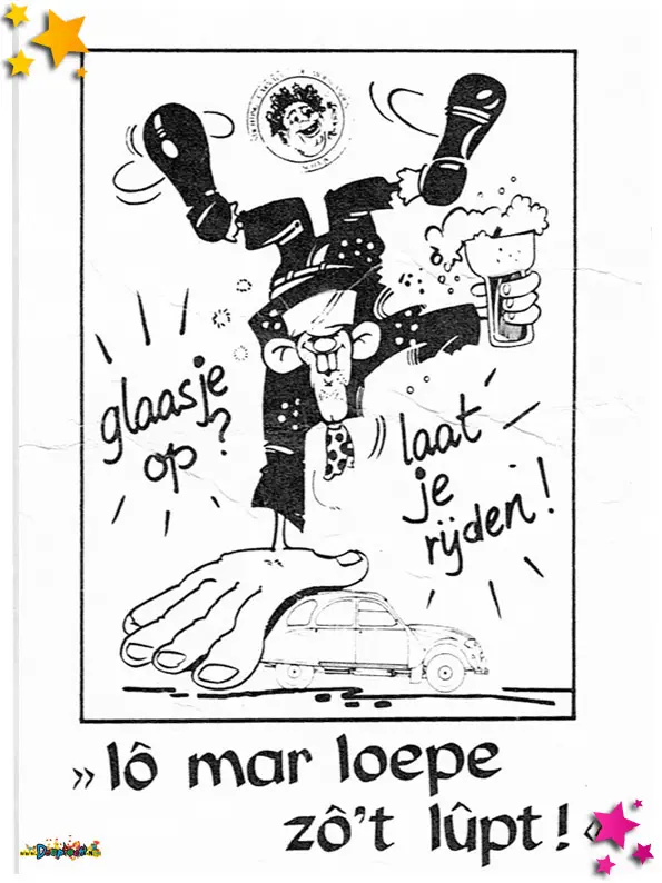 De Petôsiestampers hadden in 1989 een prachtige wagen. Het idee “De boerenbruiloft kwam di joar nie van de grond, durrum trekke we mi di paar rond” werd dat jaar ook als beste beoordeeld. Tijdens de optocht deelden de Petôsiestampers deze stickers uit.