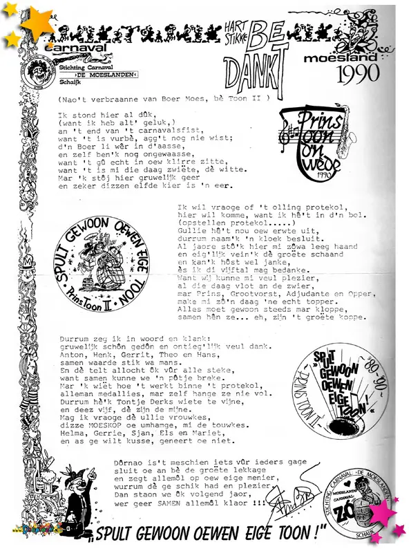 Slogans Prins Toon II 1990