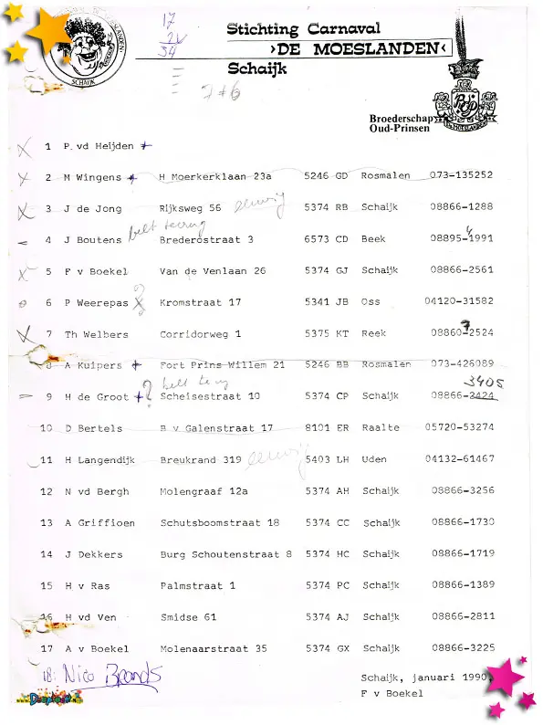 Deelnemerslijst optocht Schaijk 1990