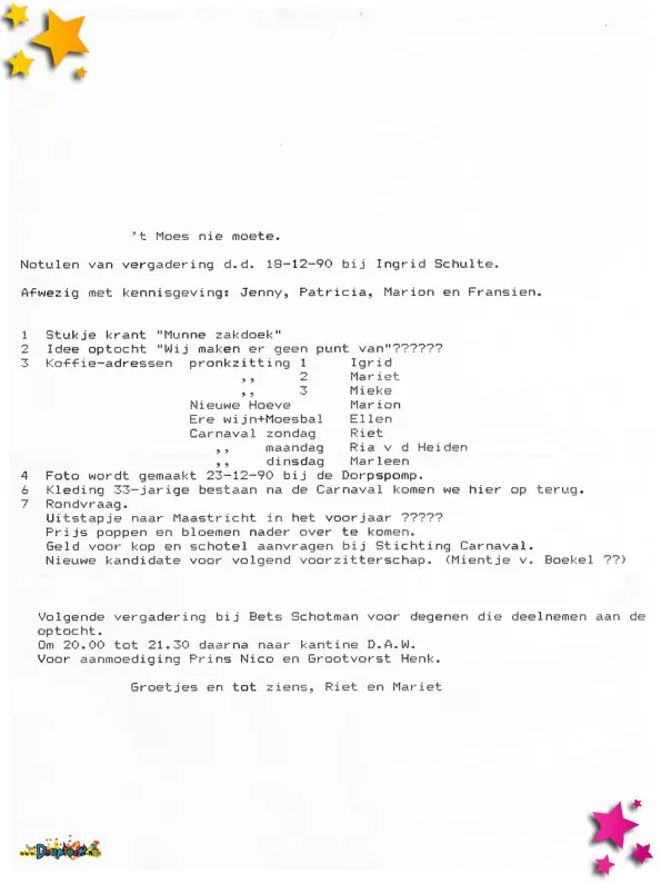 Vergaderingen 't Moes Nie Moete 1990