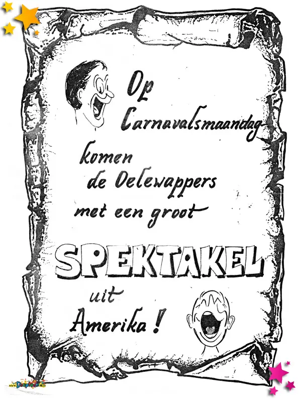 Carnavalsvereniging de Oelewappers hoef je niet uit te leggen hoe je iets moet aankondigen! Met deze flyer kondigden ze iets groots aan. De kenners weten dan wel dat het iets of wat overdreven wordt..