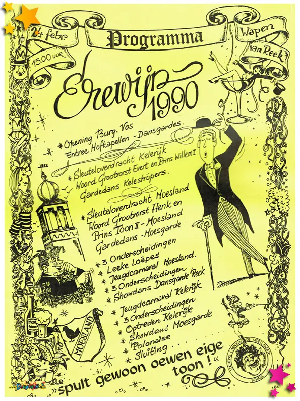 Het programma voor de Erewijn, oftewel de sleuteloverdracht, die in 1987 werd gehouden in het Wapen van Reek.