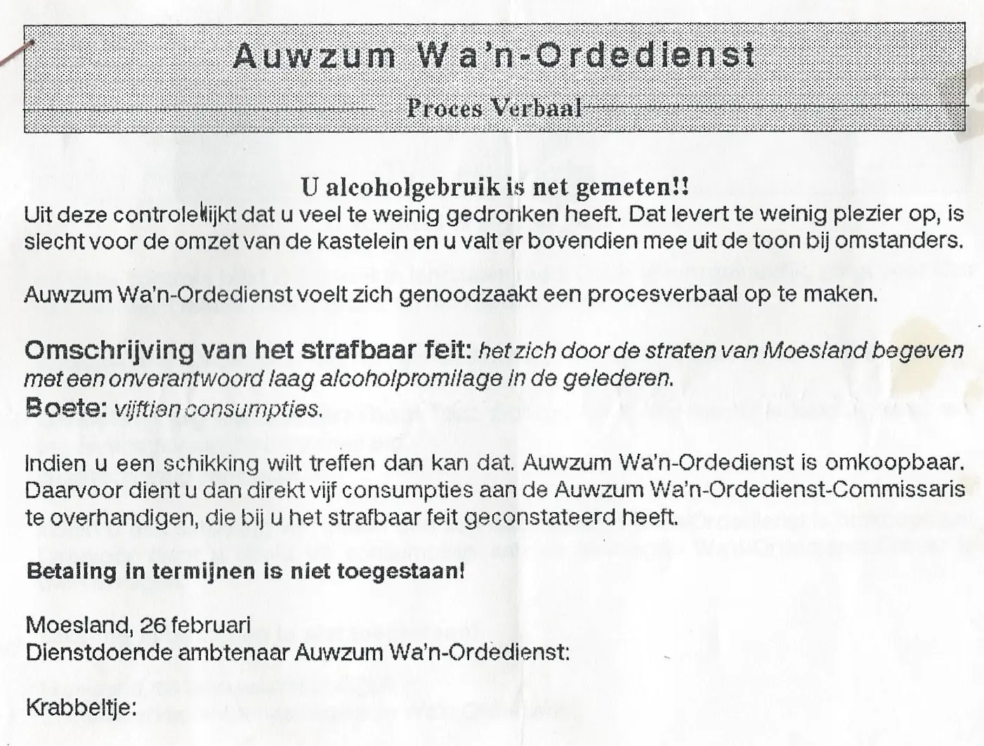 Proces Verbaal Auwzum 1990