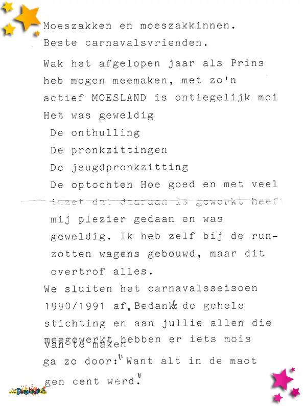 Het dankwoord van Prins Nico II van carnaval 1990-1991.