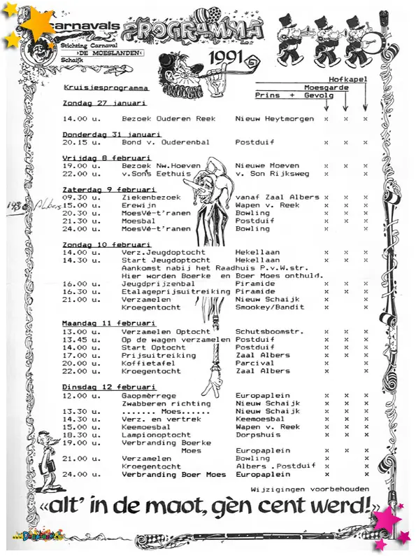 1991 was een jaar waarin de Moeslandse carnaval opnieuw liet zien dat achter elk grapje ook kameraadschap schuilt.
