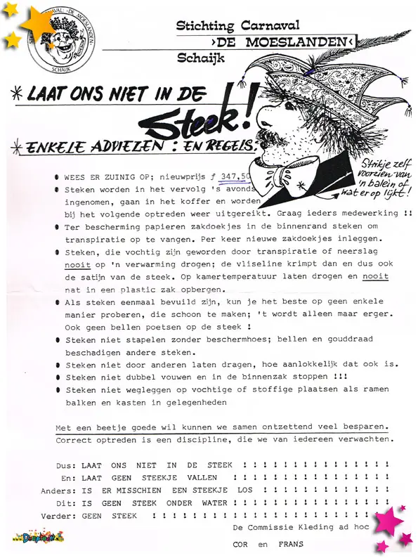 Stichting Carnaval de Moeslanden heeft richtlijnen uitgebracht voor het gebruik van de steken.