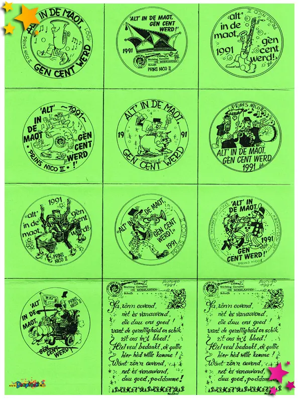 Prins Nico II was in 1991 25 jaar getrouwd met zijn Prinses Jeanne. Tijdens het feest werd er een lied ten gehore gebracht door leden van Stichting Carnaval de Moeslanden. Dit is het boekje met songteksten.