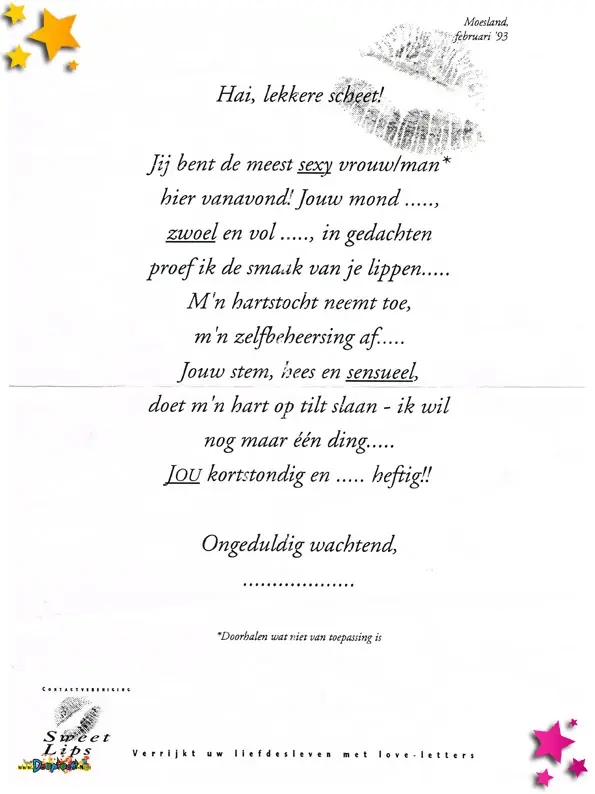Contactvereniging Sweet Lips deelde deze flyers uit.
