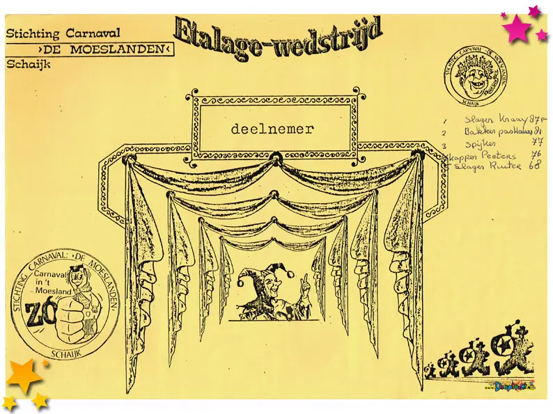 Een van de opvallende initiatieven was de etalagewedstrijd voor Schaijkse ondernemers. Winkeliers werden uitgedaagd om hun etalages zo carnavalesk mogelijk aan te kleden. De meest originele, feestelijke of verrassende presentaties maakten kans op een prijs. Het zorgde niet alleen voor sfeer in het dorp, maar ook voor meer betrokkenheid tussen carnavalsvierders en het lokale bedrijfsleven.