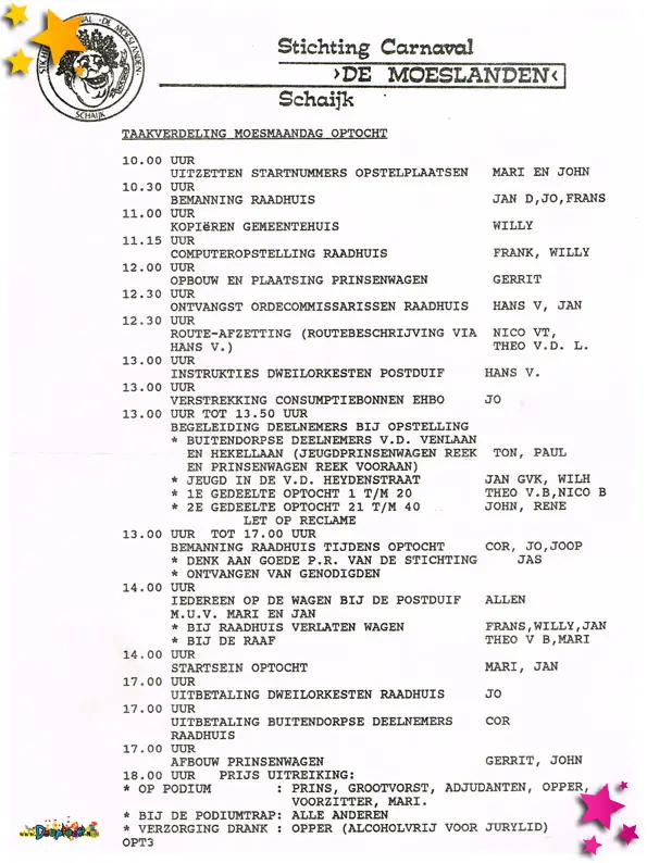 Taakverdeling optocht 1993